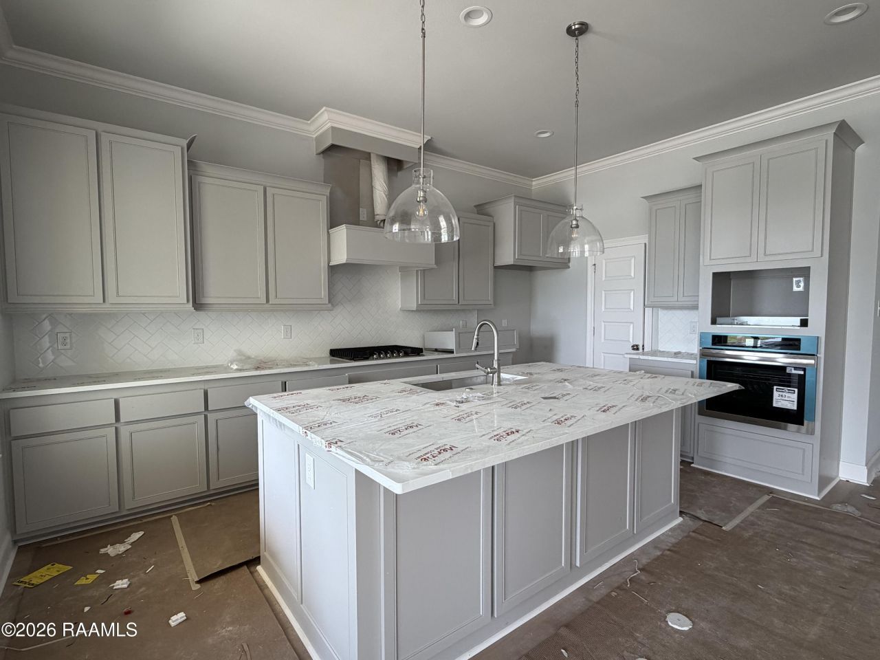 Belmont II C by Level Homes underway on waterfront lot in Canehaven! The Belmont floorplan is a stunning two-story home featuring 5 bedrooms, 4 full baths, a large open great room and a spacious loft and is perfect for a large or growing family! Step into the grand foyer which opens to the stunning wood tread staircase with iron balusters leading upstairs and the large open great room and kitchen. The great room is centered around a ventless gas fireplace with quartz surround with custom built in wall units on both sides of the fireplace and is open to the dining and kitchen. The gourmet kitchen features painted custom wood cabinetry with under cabinet lighting and 5 hardware pulls, 3cm Avenza White quartz countertops, herringbone subway tile backsplash, stainless steel appliances including a gas cooktop, single wall oven and a built-in microwave, oversized island/breakfast bar with 30 single basin stainless steel sink and overhanging pendant lighting, and a walk-in pantry. The master bedroom is downstairs and includes a spa-like bath featuring a separate 5 soaking tub with a quartz surround and a job-built tiled shower with a seamless glass enclosure, dual sinks with Pure White quartz countertops, custom framed mirrors, separate water closet, and large closet with custom wood shelving. Downstairs you will also find an additional bedroom/study with a full bath in the hall. Upstairs there is a spacious loft, 3 nice-sized bedrooms with walk-in closets, and 2 full baths (one being a Jack and Jill bath). Satin nickel plumbing, hardware and lighting fixtures throughout. The yard will professionally landscaped & fully sodded. Estimated completion date of May 2026, buyers can pick/approve certain colors and options for a limited period of time. Other lots and plans available. *The pictures are not of the actual home but are of the same floorplan, colors and options may vary.