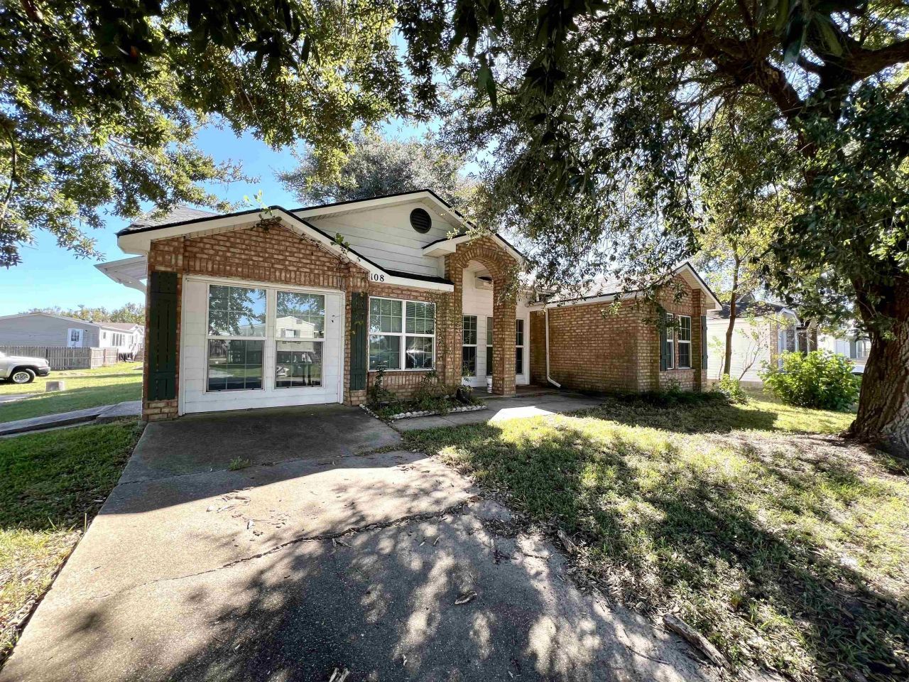East Houma split floor plan, living room with catheral ceiling and brick corner fireplace, no carpets, den conversion . This property may qualify for Seller Financing (Vendee). Some photos have been AI staged for illustration purposes only. Furnishings not provided as part of sale.
