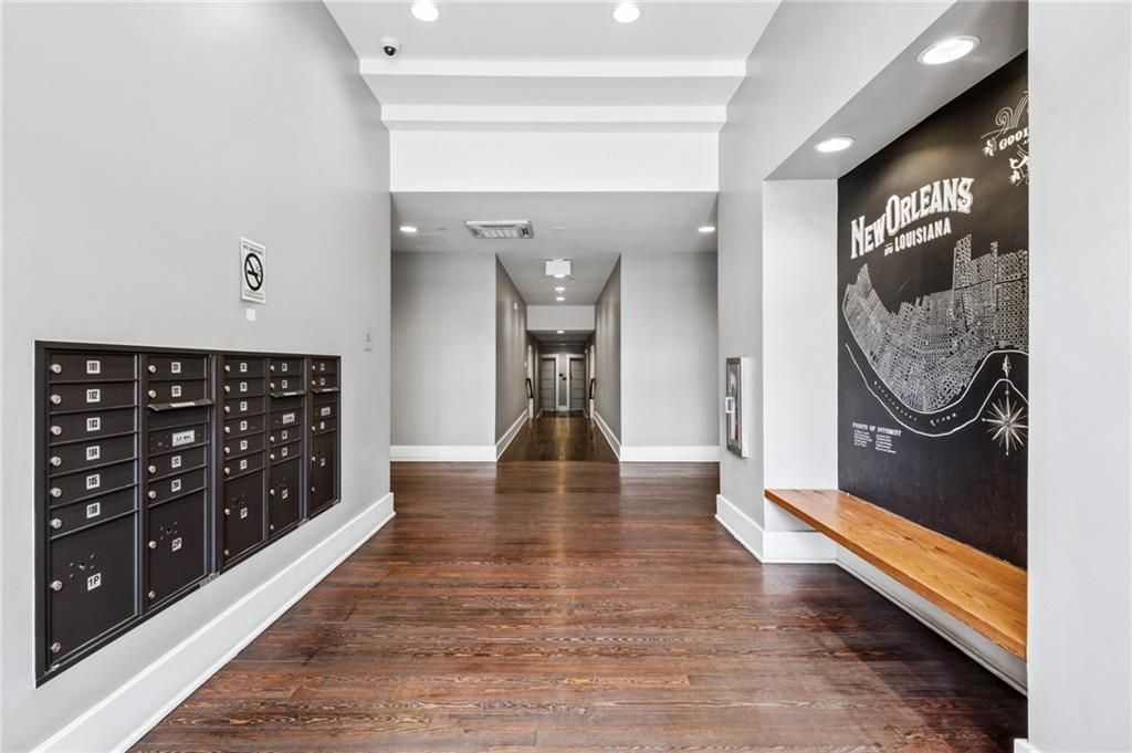 Welcome to this 2 bedroom / 2 bathroom condo in the Good Counsel Condo Association! This historic Garden District school building was renovated in 2022 and converted into 22 residential condos. The building and unit feature preserved architectural details including exposed brick, original pine flooring, large windows, and soaring ceilings with exposed ceiling joists. The condo is appointed with quartz counters and stainless appliances in the kitchen, two renovated bathrooms, and an in-unit washer/dryer. Amenities include private garage parking, a pool with updated furnishings on order, cabana and grilling area, gym, and dog run. Easy access to casual and fine dining, art galleries, Magazine Street shopping, as well as the St. Charles streetcar and parade route!
