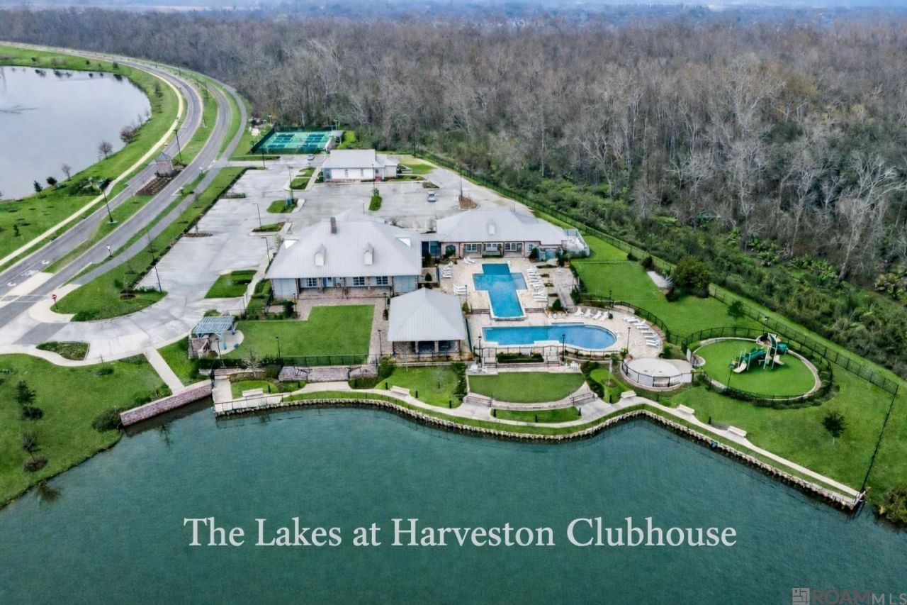 Stunning home on a premium corner lot with additional green space allowing privacy. Sleek black windows, upgraded lighting, a designer fireplace, electric shades, wine cooler/bar set the tone for refined living. Open-concept layout flows seamlessly through the living, dining, and kitchen, featuring custom cabinetry, an oversized quartzite island with a pot filler, double ovens, and premium appliances, and a golf cart garage. The primary suite is a true spa retreat with floating custom wood dual vanities with soft under-cabinet lighting, an oversized walk-in shower, designer tile, and modern fixtures?plus an impressive boutique-style walk-in closet, custom built-ins, and an island. Thoughtful architectural details, wide-plank wood floors, and a chandelier elevate the closet. A rare find blending clean modern lines with warm organic textures?perfect for entertaining or everyday living. Enjoy resort-style amenities just minutes away, including a clubhouse, two pools, a fitness center, a playground, a splash pad, and pickleball courts. Unique opportunity in The Lakes at Harveston.