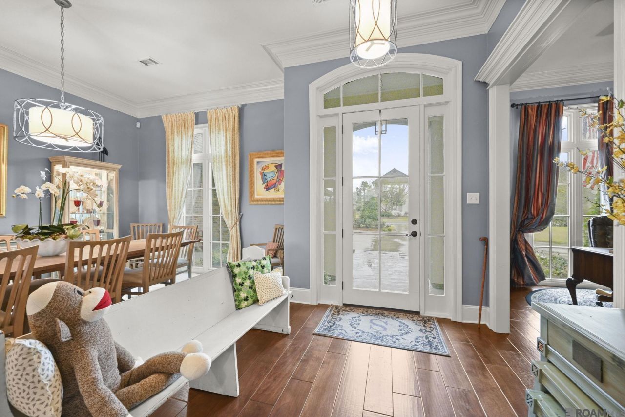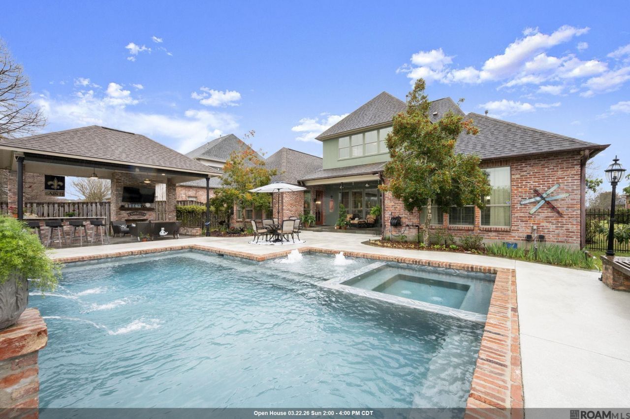 Prestigious University Club Plantation presents this fabulous custom home in golf course community that features ALL the amenities. Salt water pool with spa, an outdoor kitchen entertainment area with a fireplace, private office, bonus space, indoor fireplaces, 4 bedrooms, 3.5 bathrooms, whole home generator and the list could go on! Enter the glass encased front door you are welcomed by tall ceilings, wood flooring that runs throughout, custom millwork, bank of windows that allows natural light to pour into the homes and a beautiful artistic hand-made iron railing for the staircase. There is formal living & dining room, private office & a spacious keeping room with two sided fireplace adjacent to kitchen. The kitchen is a chef's dream with custom cabinetry, slab granite countertops, tiled backsplash, & under-mount sink. Stainless appliances which includes a gas cooktop, double ovens, beverage frig, & ice maker. Plenty of storage, a big island & ample countertops & plus a walk in pantry. The primary suite with trayed ceiling, barn door, ceiling fan & lots of natural light, and views overlooking the pool area with private en-suite bath a renovated bathroom with dual vanities, water closet, stained glass window, soaking tub & frameless glass shower & walk in closet. The stairs lead to a large bonus room, small private office, 2 bedrooms with Jack & Jill access to a bathroom. Growing family will appreciate this large laundry room plus desk drop are all conveniently positioned near the kitchen. Other Amenities: 3-car garage plus storage, fully fenced, mature landscaping, no carpet, 2 bedrooms & 2.5 baths downstairs, commissioned stain glass windows, etc. Sellers created an amazing backyard with a salt water pool, spa plus an outdoor kitchen made for entertaining. The outdoor kitchen has a gas grill, ice machine. refrigerator, high low pressure side burner, sink, & wood burning fireplace. It's an outdoor area you can enjoy year around! Make your showing appt today!