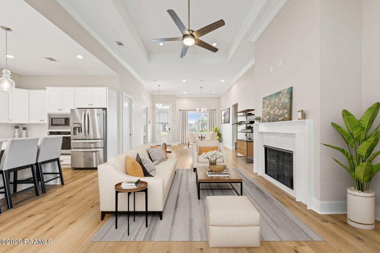 Better than new construction! This stunning home offers a triple split, open floor plan designed for both functionality and style. Just two years young, it features thoughtful custom upgrades throughout, including plantation shutters, gutters, designer finishes, and more.The spacious living room showcases a cozy gas ventless fireplace, while the gourmet oversized kitchen flows seamlessly for easy entertaining while offering tons of cabinets and lots of counter space. Step outside to a true outdoor living area--complete with a second fireplace, built-in gas grill, sink, bar area, and custom tile flooring for a high end look and feel. With remote-controlled custom screens, the back patio can be enjoyed year-round as a private extension of your living space. Enjoy the spacious backyard with a beautiful tree lined view behind a full privacy fence (and plenty of space to add your dream pool). Light-filled and airy, this home is perfect for modern living with four bedrooms and three full baths that provide privacy and functionality. Conveniently located in sought-after Langlinais Estates, youll be close to Acadianas best shopping, dining, and amenities! This price point is rare in this community so schedule your showing today to appreciate all it has to offer!