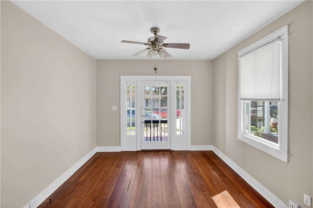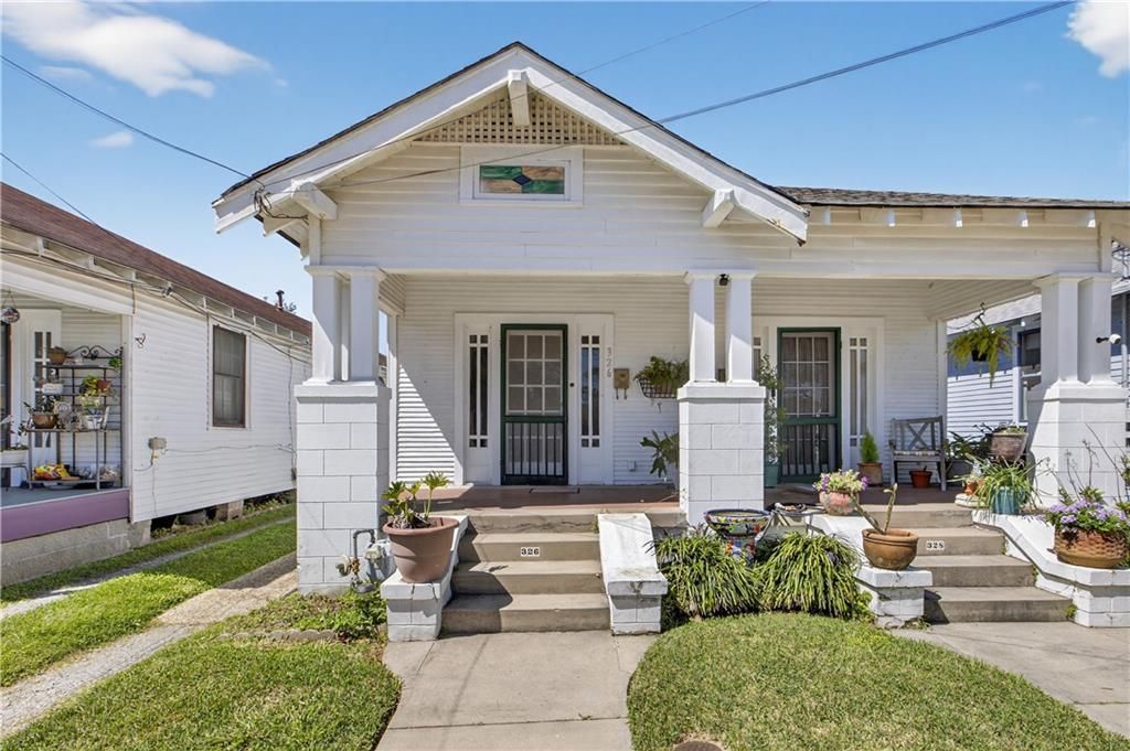 Lovely Shotgun style duplex with great curb appeal. Nice covered front porch . Hardwood floors in den, dining, and bedroom. Tile in kitchen and bath. Rear eclosed porch is the laundry area. This unit has a small back yard and use of a garage. Shared driveway with neighbor to the left.