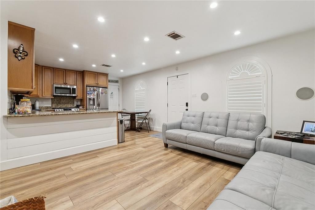 This beautifully updated 3-bedroom, 2-bath home offers open living, modern updates, and a backyard made for entertaining. The spacious living area showcases updated flooring, recessed lighting, and a custom built-in entertainment wall?creating a comfortable, inviting space that flows seamlessly into the kitchen and dining areas. The kitchen is well-equipped with granite countertops, stainless steel appliances, and abundant cabinetry. The home also features nicely updated bathrooms, well-sized bedrooms, and a practical, easy-flow layout designed for comfort and convenience. Step outside to a backyard built for entertaining. Enjoy the expansive covered patio complete with recessed lighting, an outdoor TV setup, and a large paver patio?perfect for hosting gatherings or relaxing year-round. The property also includes a separate storage barn currently finished as a 'man cave, offering flexible use as a workshop, she shed, hobby space, playroom, or additional storage. Additional highlights include an attached garage, new roof (2024), and plantation shutters throughout. Conveniently located just minutes from Williams Blvd, Veterans Blvd, and Interstate 10, providing quick access to shopping, dining, the airport, and the greater New Orleans area. Move-in ready with standout indoor living and exceptional outdoor space in a highly convenient Kenner location.