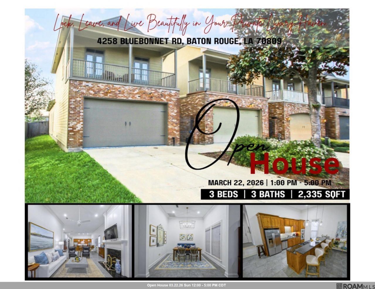 **OPEN HOUSE this Sunday 3/22 - 12-5:00 - Tucked away for maximum privacy, the rare combination of lock-and-leave convenience with the soul of a luxury estate - Your experience begins at the private, quaint courtyard?a secure sanctuary to relax - Once inside, the home has an incredible sense of scale, boasting 12-foot ceilings, elegant crown molding, and an open floor plan designed for both effortless entertaining and intimate family life - The kitchen is a true centerpiece, featuring beautiful granite counters, a large peninsula for guest seating and a ton of workspace - It flows seamlessly into the keeping and living areas - For those seeking a quiet retreat, the spacious primary suite is privately situated at the rear of the home, while the additional upstairs bedrooms share a balcony, perfect for a morning coffee or a breath of fresh air - Beyond the aesthetics, the home is as practical as it is beautiful, offering a generous garage a spacious utility room, and an abundance of storage throughout - Located in the heart of Baton Rouge with super easy access to both interstates, major arteries like Jefferson, Bluebonnet, and Essen - This is more than just a house; it is a practically maintenance-free haven designed for those who want to spend less time on chores and more time enjoying the vibrant life surrounding them -- Visit this one and you'll want to call it home - Measurements and acreage are not warranted by the Realtor