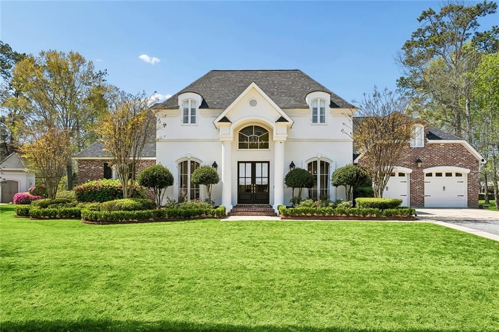 Nearly 5,000 square feet of refined living space, this beautifully updated residence blends timeless elegance with elevated modern finishes and an exceptional floor plan. From the moment you enter, the 20-foot grand foyer makes a stunning first impression with its spectacular winding staircase, refinished hardwood floors, fresh paint, and new chandeliers throughout. Designed for both elegant entertaining and comfortable daily living, the first floor features a gracious formal dining room and a private office tucked behind French doors just off the foyer, complete with built-ins that make the space as functional as it is polished. The great room is anchored by a cast limestone fireplace, custom built-ins, and opens seamlessly to the stunning newly renovated kitchen. A true showpiece, the kitchen offers dramatic underlit Medusa quartzite countertops, all new cabinetry, Monogram appliances, and whitewashed brick accents that add warmth, texture, and sophistication. Just beyond, the keeping room offers a second fireplace and inviting gathering space at the heart of the home. The newly added wet bar is beautifully finished with underlit countertops and a beverage refrigerator, creating an elevated space for entertaining. The downstairs primary suite offers a luxurious private retreat with generous proportions, a beautifully appointed bath, and the added convenience of two closets. Upstairs, four spacious bedroom suites and a media room provide exceptional space for family and guests. Additional highlights include a screened porch, three-car garage with tandem bay, desirable slab-on-grade floor plan, newer HVAC units, newer roof, and fresh landscaping that enhances the home's impressive curb appeal. Located in the gated community of The Sanctuary, residents enjoy a resort-style pool, clubhouse, tennis courts, walking trails, and convenient access to the Causeway. Luxury Northshore living at its finest. Make an appointment today!